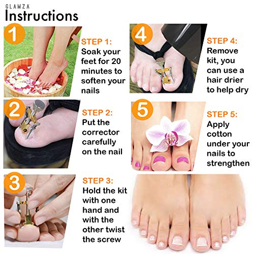 - سهل الاستخدام - يجلس الخطافان بزاوية أسفل الظفر لضبطه إلي وضعه الصحيح حيث يتم تدوير مسمار المشبك. استخدمه لمدة 5 إلى 15 دقيقة يوميًا لرؤية النتائج في أقل من 30 يومًا!