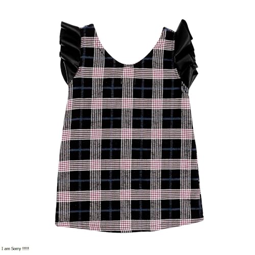 فستان من لوفلي لاند كاروهات من الجلد بأكمام قصيرة مكشكشة للبنات - أسود وأحمر وأزرق، فستان عملي