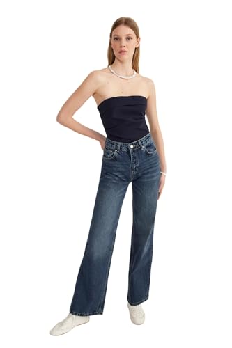 ترنديول بنطلون جينز بخصر مرتفع وارجل واسعة للنساء، لون ازرق غامق، موديل Twoss25Je00089