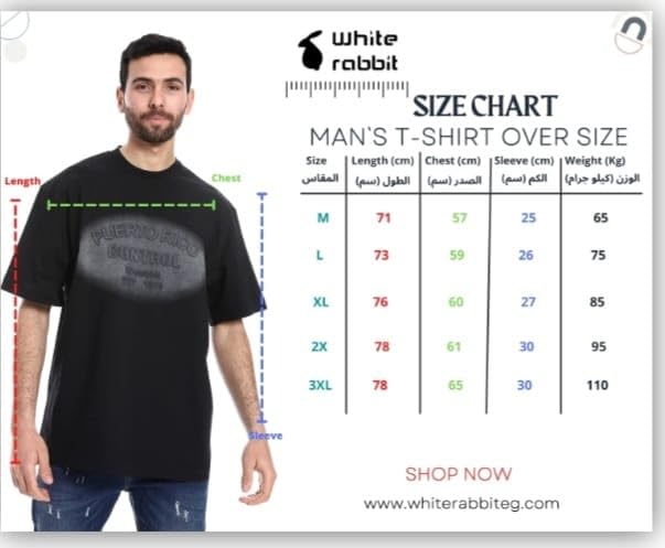 تي شيرت من وايت رابيت للجنسين، بقصة عادية، قصير الكم، مصنوع من القطن، باللون الأبيض، مقاس كبير