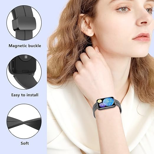 سوار رياضي من السيليكون من نكست ستور متوافق مع ساعة هواوي فيت 2، مشبك مغناطيسي قابل للطي، سهل التركيب والإزالة، سوار بديل مريح وخفيف لشكل معصم أنيق