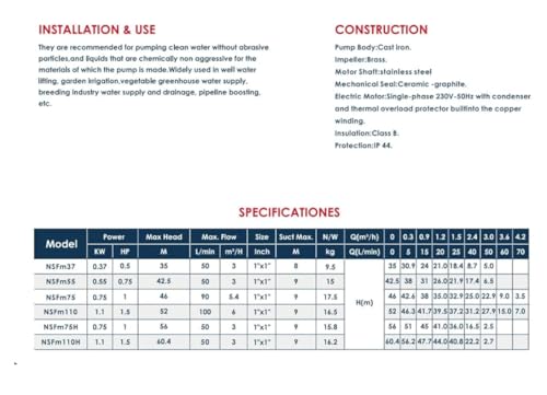مضخة نفاثة NSFM75 46M أحادية الطور 1 حصان 2.54 سم، محرك مياه ذاتي التحضير