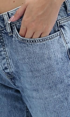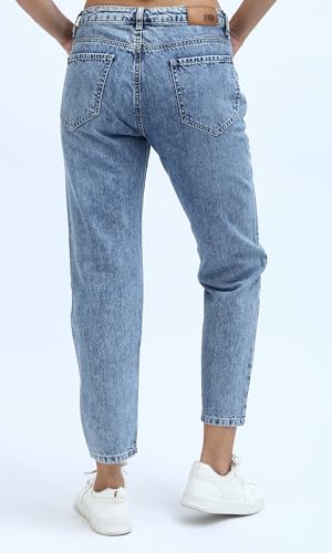 بنطلون جينز بنمط سادة للنساء بقصة موم فيت وإغلاق بسوستة وأزرار من ريفين، أزرق غامق