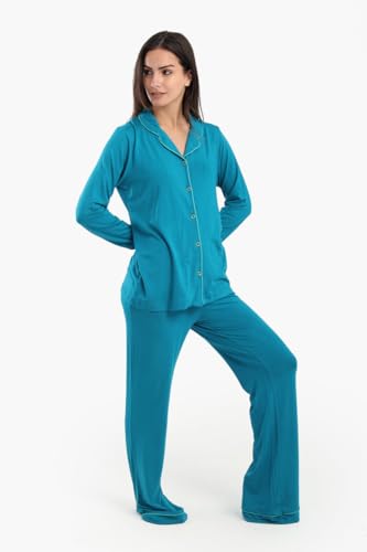 طقم بيجامة فيسكوز بخطوط متباينة للنساء من كارينا
