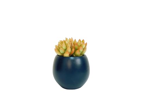 نبات صبار أصفر مع وعاء مزخرف بلون أزرق غامق- وعاء مقاس 8 سم لتزيين المكتب وإكسسوارات المطبخ وديكور المنزل- نباتات داخلية طبيعية - نباتات صبار طبيعية ونباتات عصارية