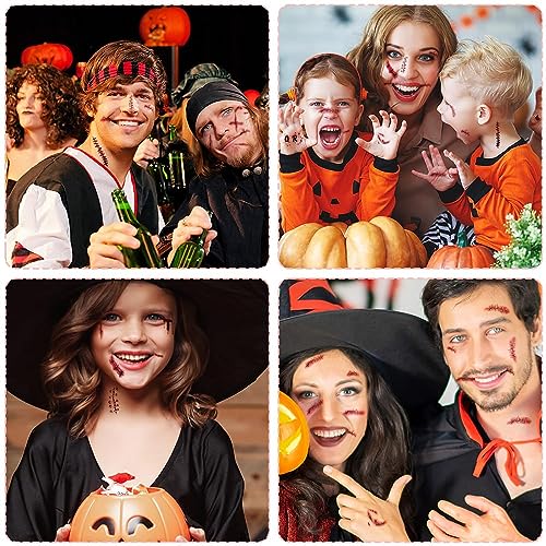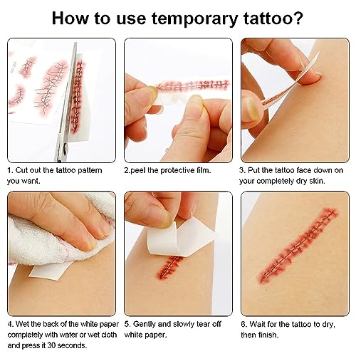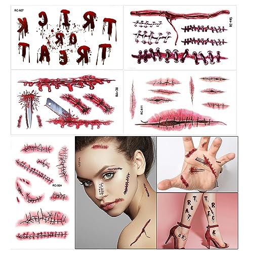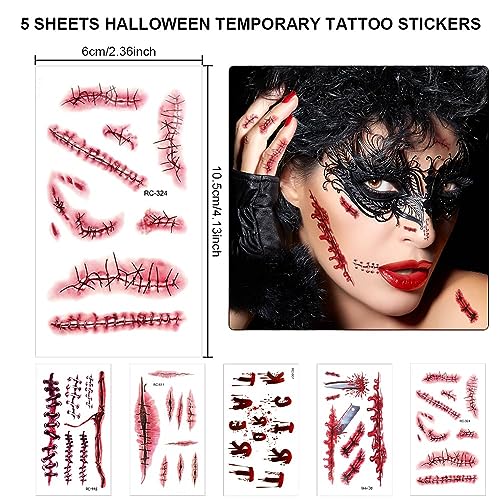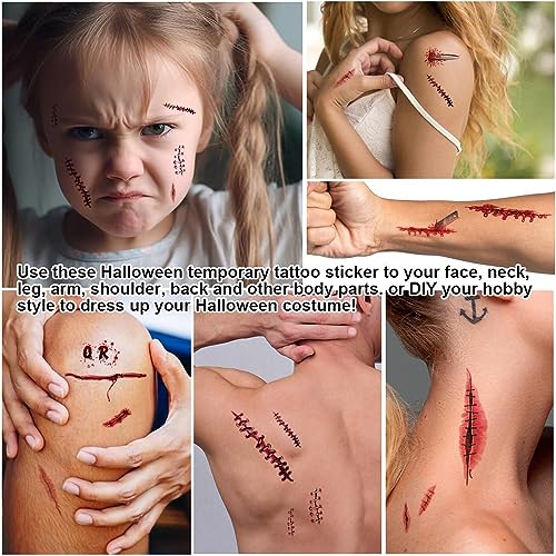 تاتو مؤقت للهالوين مكون من 42 قطعة من ملصقات الوشم الواقعية على شكل ندبات وهمية، تاتو دم مزيف لمكياج الهالوين وتاتو زومبي بغرز وندبات للوجه لحفلات الهالوين التنكرية