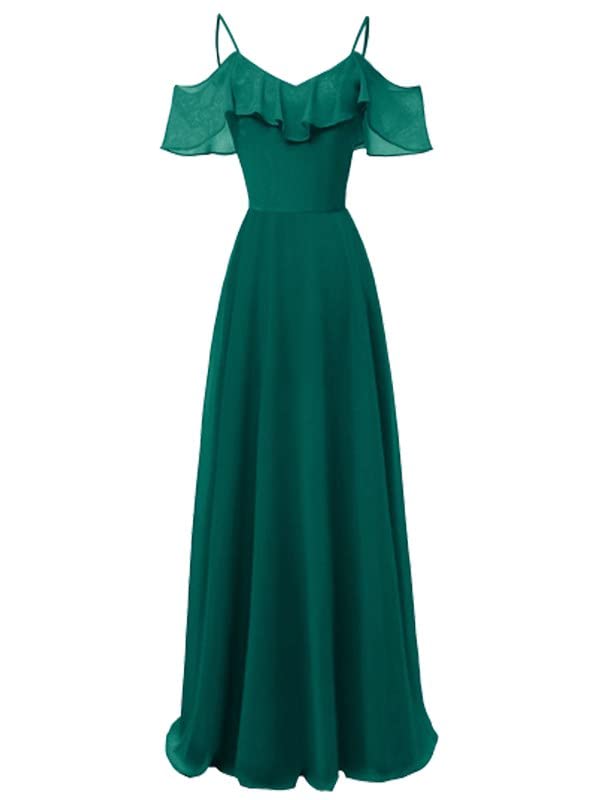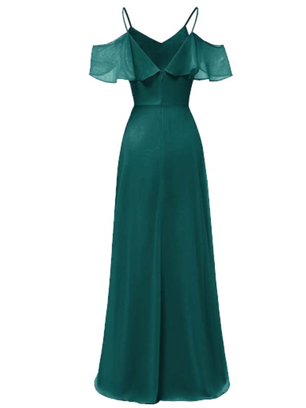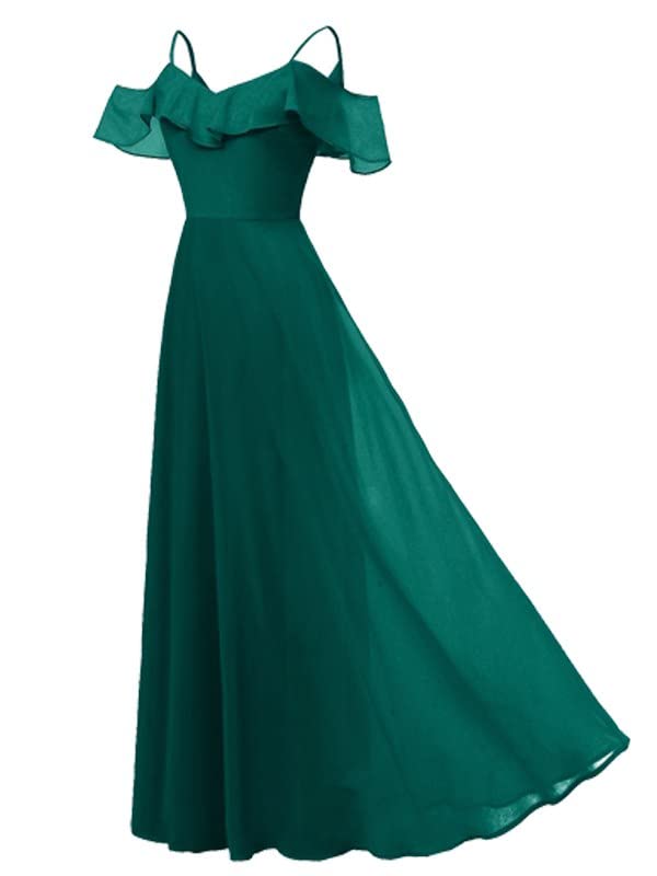 فستان طويل من الشيفون بدون اكمام للنساء وباشرطة كتف مع بطانة - لون اخضر غامق