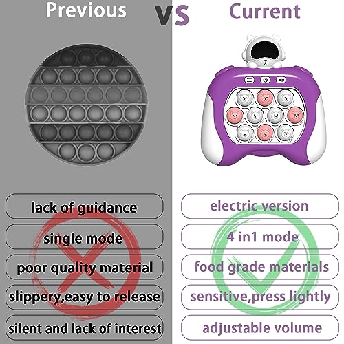 - تحديث التكنولوجيا من الجيل الثاني من وحدة التحكم في ألعاب الدفع السريع - هذه وحدة تحكم ألعاب سريعة البوب تجمع بين السيليكون الناعم. تعتمد على تصميم نمط جديد تمامًا وتحديثات تقنية، مع أزرار حساسة للغاية وزيادة في عدد تحديات المستوى، مما يجعلها أكثر صعوبة. بالمقارنة مع الجيل الأول من وحدات التحكم في الألعاب، فإنه يتمتع بإحساس أفضل بالفحص البدني وهو أكثر ملاءمة للأطفال الصغار.