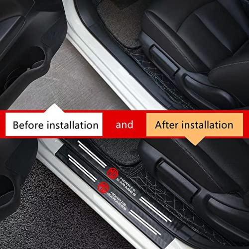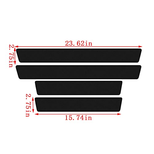 - محتويات العبوة: 4 قطع من ملصقات عتبة السيارة (2 للابواب الامامية: 23.6×2.7 بوصة، 2 للابواب الخلفية: 15.7×2.7 بوصة)، ملاءمة عالمية لسيارتك والشاحنتة الصغيرة وسيارات الدفع الرباعي والسيارات الرياضية.