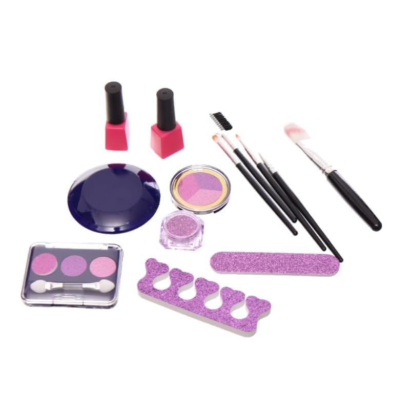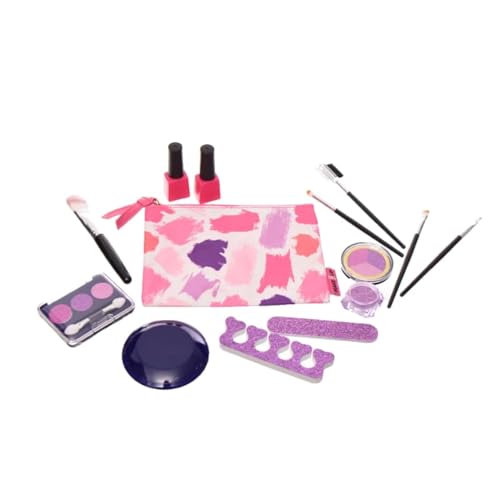مجموعة ألعاب مكياج بلاستيك للأطفال مكونة من 15 قطعة علبة مستحضرات تجميل تتضمن فرش وايشادو وشنطة لوقت لعب مرح متعددة الألوان