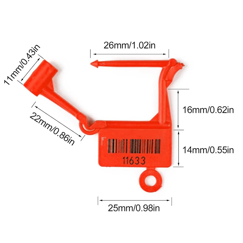 - ✅ أرقام تسلسلية فريدة: يتميز كل قفل أمان بلاستيكي برقم تسلسلي فريد محفور بالليزر على كل من عمود البرغي وآلية القفل لتوفير إمكانية التتبع والأمان بشكل أكبر