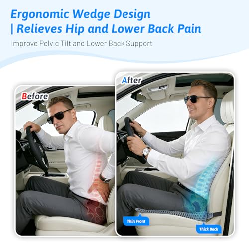 - ✅لا مزيد من آلام الظهر بعد اليوم: مخدة مقعد إسفينية مصنوعة من فوم ميموري فاخر، تتميز بمتانة ونعومة متوازنة وتصميم مريح بفتحات للعصعص، تهدف لتخفيف الضغط على أسفل العمود الفقري وتقليل آلام عظم الذنب، مع العلم أنها قد لا تقضي على جميع الأعراض عند بعض الأشخاص تمامًا.