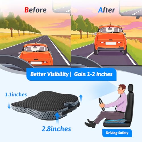 مخدة إسفينية من فوم ميموري لمقعد السيارة للسائق والراكب، مخدة مقعد السيارة للقيادة لتحسين الرؤية والوضعية لتخفيف آلام الورك من دريمر كار (غطاء شبكي، أسود).
