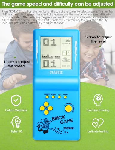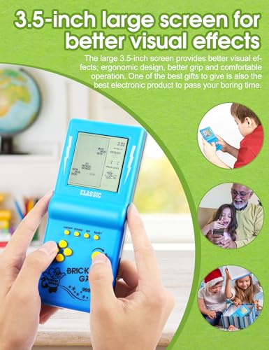 جهاز تشغيل ألعاب الفيديو الرقمية بشاشة كبيرة 3.5 بوصة لمكعبات بناء الثمانينيات والتسعينيات لعبة السباق/الدبابات المدمجة 23 لعبة بازل كلاسيكية تمتاز بالحنين إلى الماضي للأطفال من اتش ال اف، (لون أزرق)