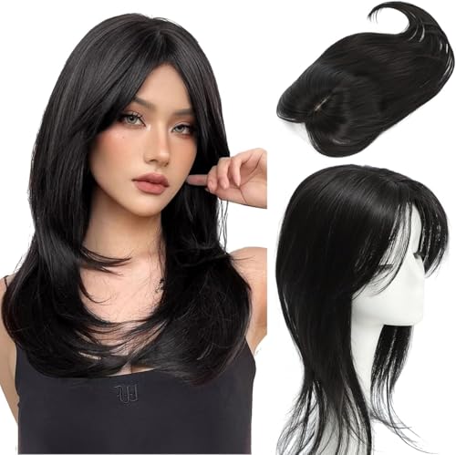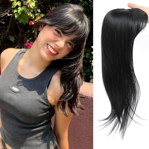 وصلة شعر بمشبك لتغطية الشعر 360 درجة ثلاثية الأبعاد مع 4 مشابك للنساء ذوات الشعر الخفيف، قطع شعر علوية منفوشة 32-38 سم (JW297-N1- أسود)
