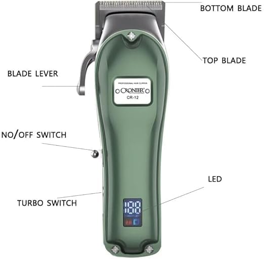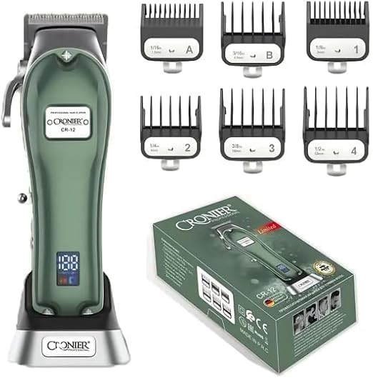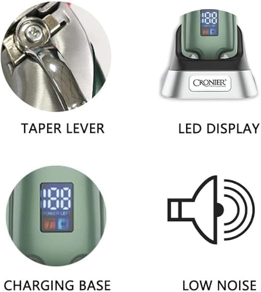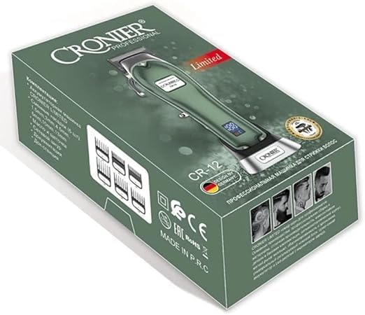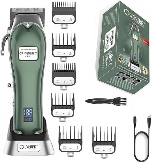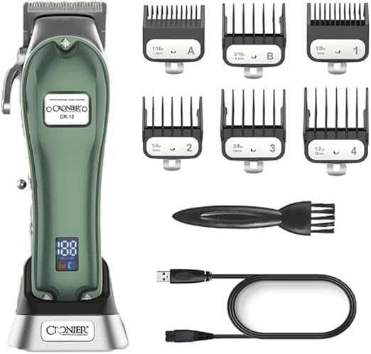 ماكينة حلاقة كهربائية احترافية احترافية لاسلكية قابلة للتعديل للرجال من كرونير، ماكينة قص شعر كهربائية قوية C (اخضر) CR-12