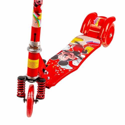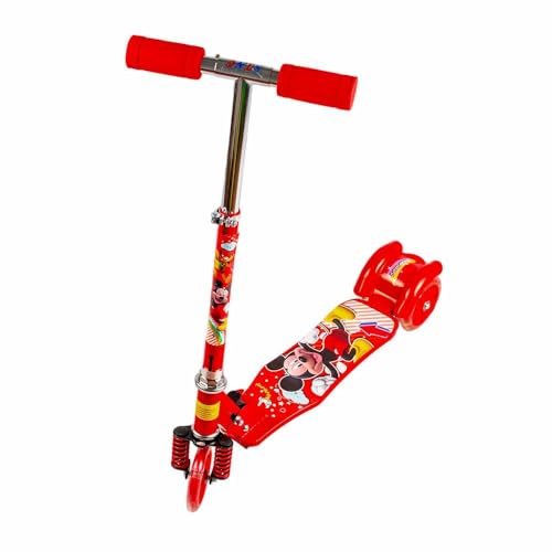 سكوتر للأطفال بتصميم ميكي ماوس بثلاث عجلات مع نظام تعليق، لون أحمر