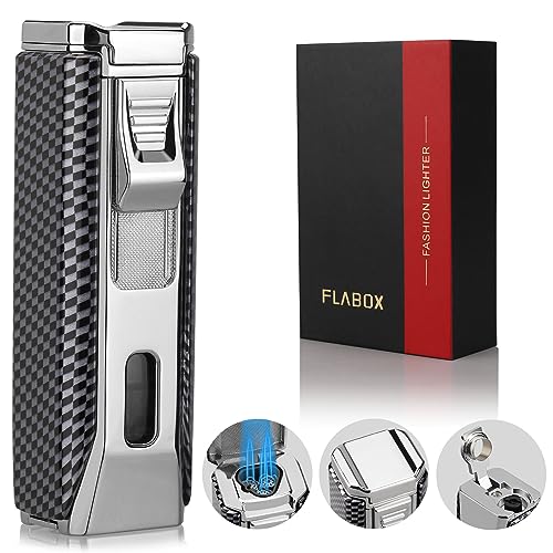 ولاعة شعلة ثلاثية اللهب من فلابوكس مع مثقاب وحامل، ولاعة بوتان متعددة الوظائف مقاومة للرياح وقابلة لإعادة الملء، صندوق رقيق هدية للرجال والزوج في عيد الميلاد (فضي، بدون بوتان)
