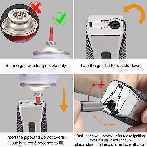 - 🔥【نافذة وقود مرئية وقابلة لإعادة الملء】كمية الوقود مرئية من الخارج. يمكنك مراقبة كمية الوقود في الخزان من خلال النافذة المرئية، لمعرفة متى تحتاج إلى إعادة ملء الغاز. ولاعة الشعلة هذه قابلة لإعادة التعبئة، مما يعني أنه يمكن استخدامها بشكل متكرر (البوتان غير متضمن).