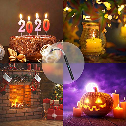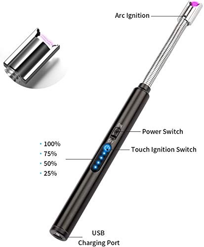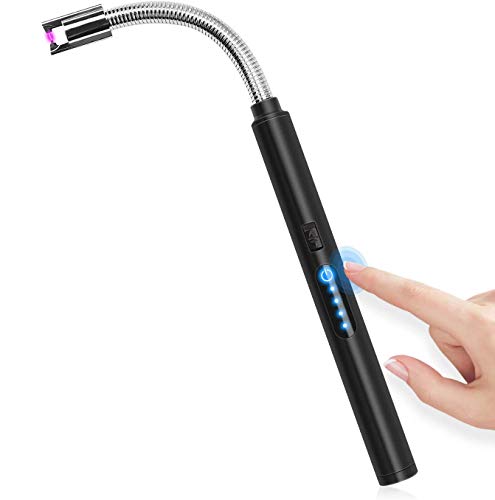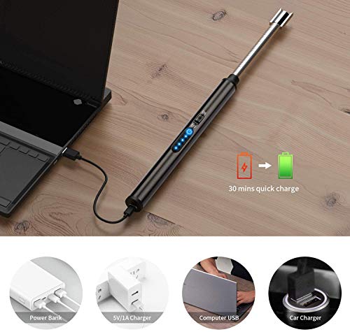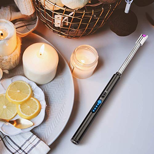 ولاعة شموع كهربائية قابلة لإعادة الشحن بمنفذ USB مع بطارية بشاشة عرض، ولاعة كهربائية تعمل باللمس ومقاومة للرياح لإضاءة الشموع والألعاب النارية والفرن ولأغراض التخييم من اليكليف (لون أسود)