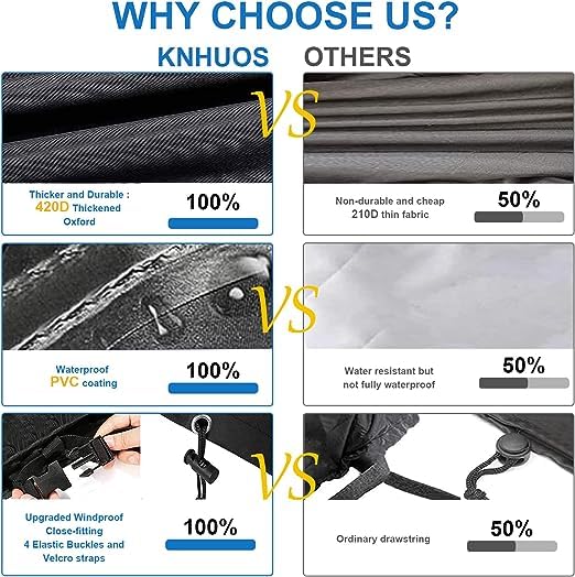 - 【تصميم مطور مقاوم للرياح】يوجد أربعة أشرطة إغلاق بالضغط في الأسفل. تم تصميمه خصيصًا للحفاظ على الغطاء آمنًا على الأثاث، حتى لا ينفجر بفعل الرياح. يتيح الإبزيم التلسكوب على الجانبين التوسيع بحرية ويغلق بشكل أكثر مثالية على أثاثك.