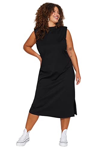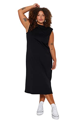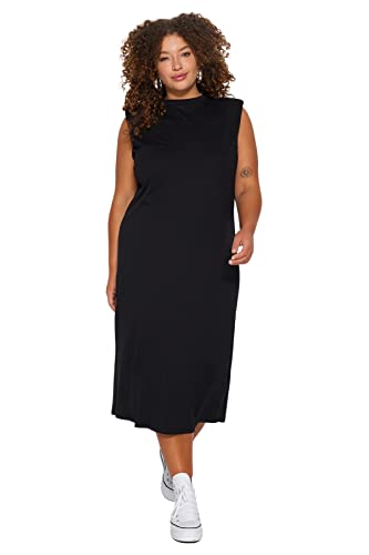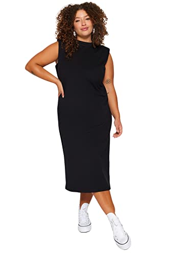 فستان محبوك TBBSS23AH00079 طويل ومبطن برقبة دائرية ضيقة للنساء من ترنديول، لون أسود، مقاس كبير