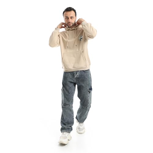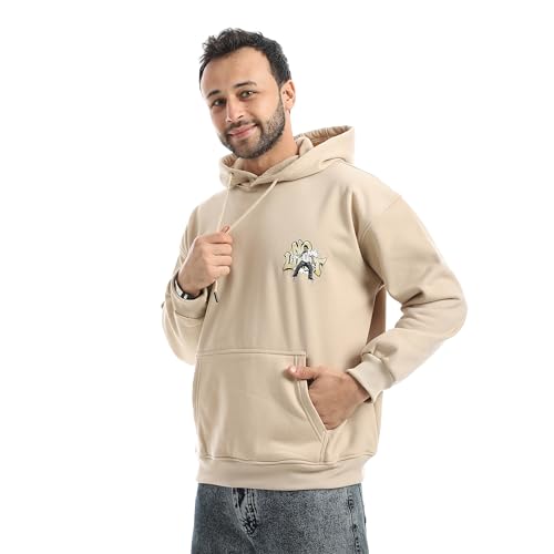 سويت شيرت واسع بغطاء للرأس مع طبعات على الصدر والظهر للرجال من سيزر