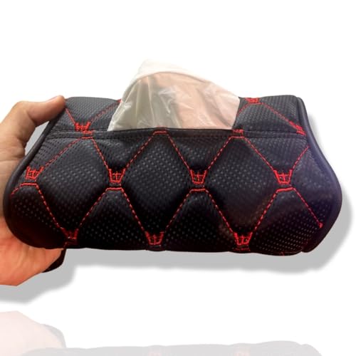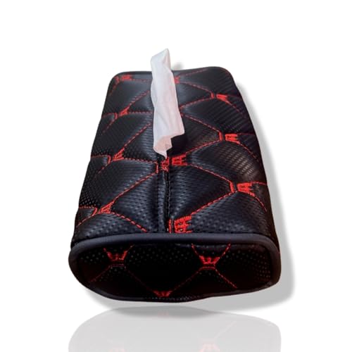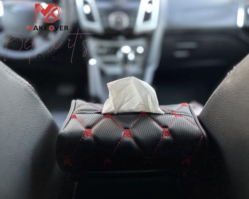 حامل مناديل جلد للسيارة يثبت على مسند الرأس الخلفي للسيارة، حامل علب مناديل متعدد الاستخدامات للسيارة - أحمر - من ميك اوفر
