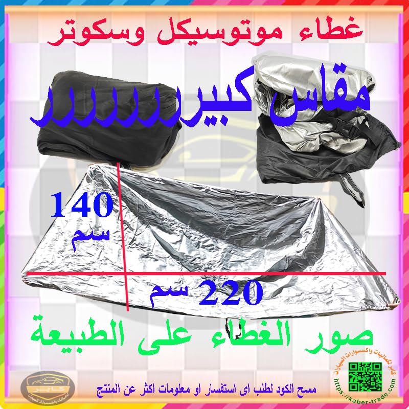 غطاء موتوسيكلات 2020 مقاوم للماء والغبار ويحمي من الأشعة فوق البنفسجية مع فتحة قفل ومشبك مقاوم للرياح من كابر مصر (مقاس كبير: الطول 2.2 م × العرض 1.4 م)