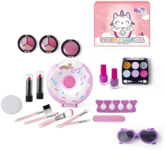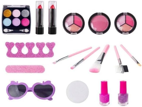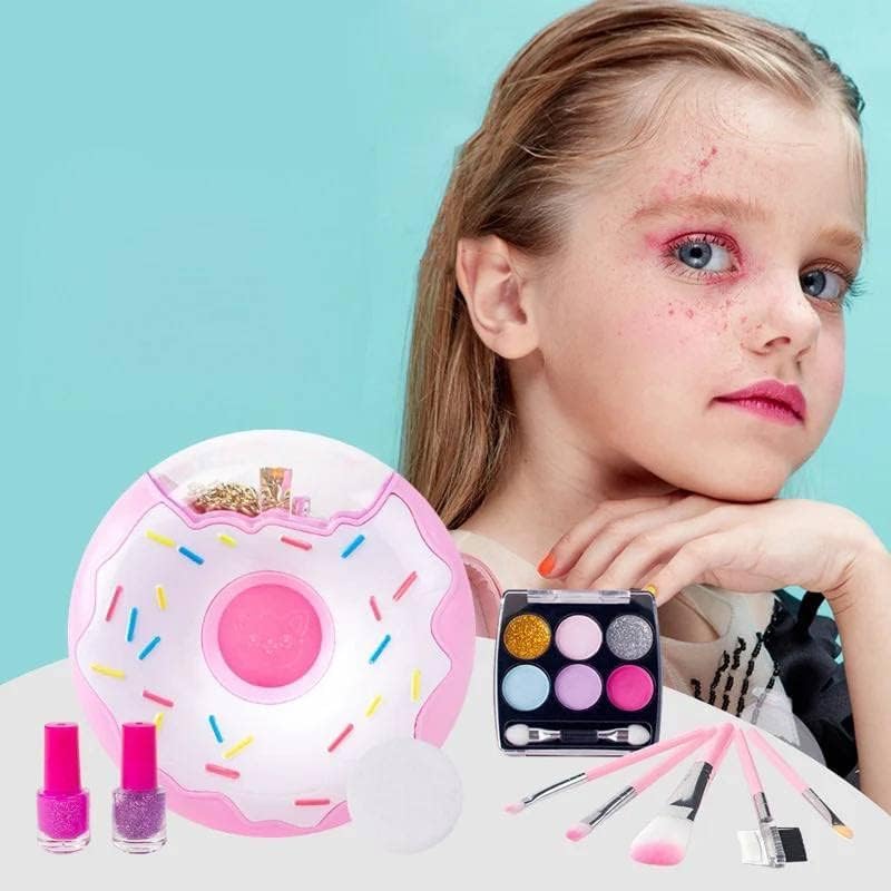 مجموعة مكياج قابلة للغسل للبنات البيبي مع حقيبة مستحضرات تجميل للبنات