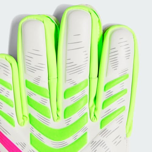 جوانتي حارس مرمى بريديتور للأولاد والبنات الناشئين للمباريات من اديداس، قفازات لحارس مرمى كرة القدم، (بدون حماية للأصابع)، ليموني (لوسيد ليمون)، أبيض، وردي (لوسيد بينك)، مقاس 6.5
