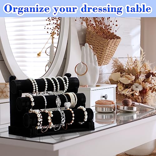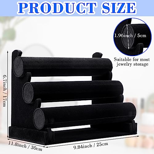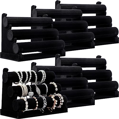 ثيل 6 قطع من حامل الاساور المخملي 3 طبقات عرض الحلقية ومنظم والساعات والاساور وتنظيم المجوهرات باللون الاسود 12.2 × 6.7 9.3 انش خشب بلاستيكي