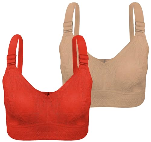 طقم حمالة صدر دانتيل فائقة الدعم بقالب C للنساء من قطعتين من لاسو