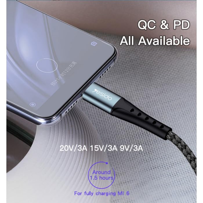- [ سلك نايلون مجدول متين ]: يعتمد الكابل على غلاف خارجي من النايلون المجدول الذي يقاوم الانثناء المتكرر والتلف والخدوش، مما يجعله مناسبًا للاستخدام الطويل والتنقل المستمر. كما يمنع التشابك ويوفر سهولة التخزين داخل الحقيبة أو المكتب دون فقدان الشكل أو المرونة.