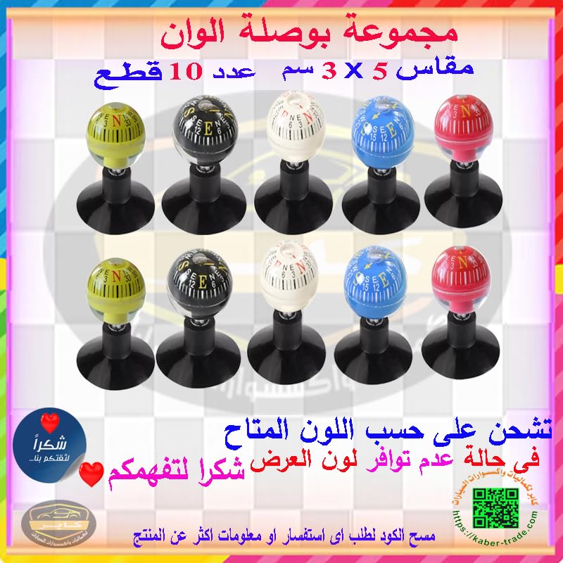 بوصلة صغيرة متعددة الاستخدامات ، قاعدة شفاط للسيارة والقارب والشاحنة (10 قطع الوان متنوعة) - من كابرمصر 2020