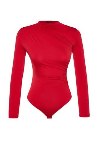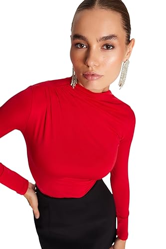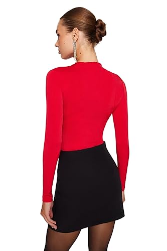 ترنديول سالوبيت بكباسين مفصل بياقة ضيقة للنساء، لون احمر، TPRAW24BD00008