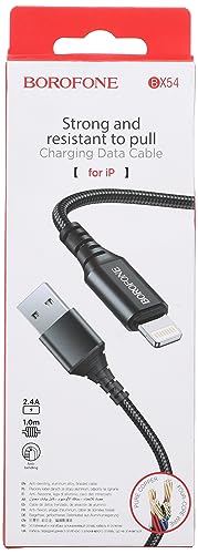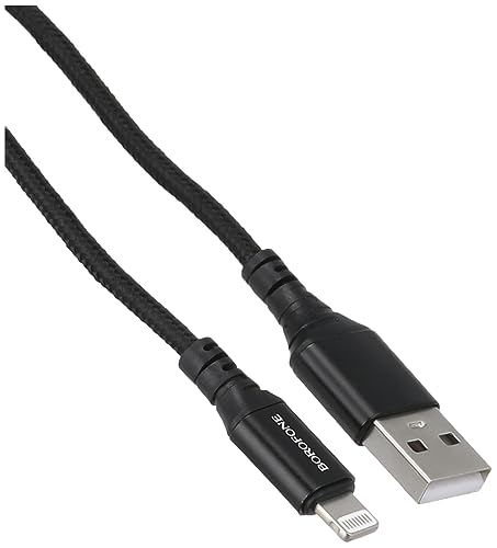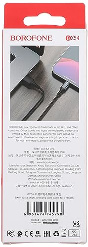 كابل شحن ونقل بيانات USB الترا برايت من بوروفون للايفون، لون أسود، موديل BX54، لهاتف ذكي