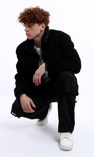 جاكيت شتوي صوف بأزرار ونمط عصري للرجال من ريفين، أسود