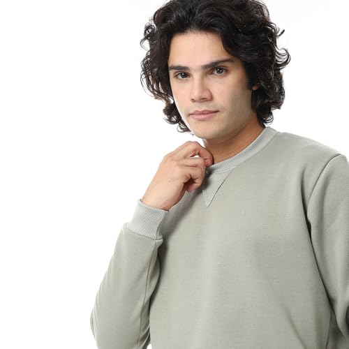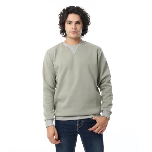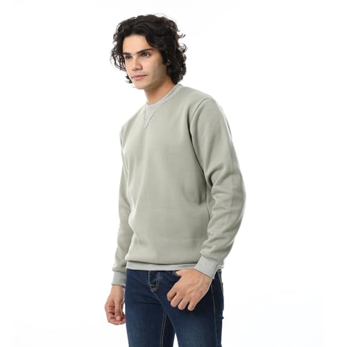 سويت شيرت رجالي مريح كاجوال سادة بريطاني بلون بيج غامق من ريد سيركل