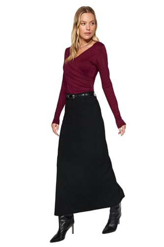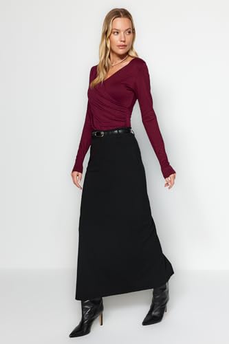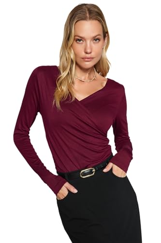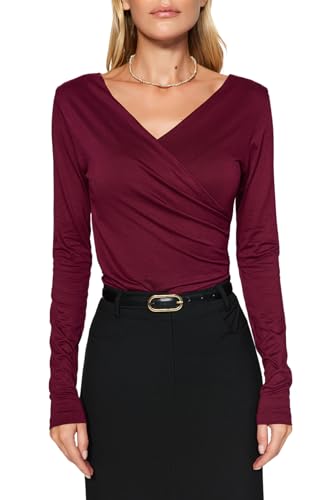 بودي محبوك للنساء من الفيسكوز بقبة V وأزرار كبس مرنة طراز TWOAW24BD00045 من ترنديول، لون بورجندي