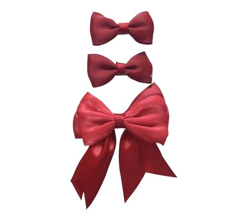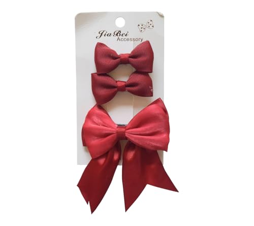 طقم مشابك شعر بفيونكة للبنات من دافني مكون من 3 قطع - أحمر
