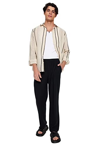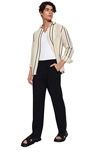 بنطلون رياضي رجالي إصدار محدود بقصة أرجل واسعة/مريحة وتصميم نسيجي خالٍ من التجاعيد ومزود برباط خفي داخلي لزيادة الراحة، قطعة واحدة، TMNSS23EA00013 من ترينديول
