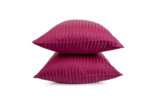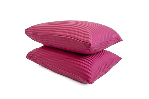طقم كيس مخدة مخطط من هوم اوف لينين - طقم يتكون من 2 كيس مخدة 50 سم × 70 سم - كيس مخدة سهل التركيب مصنوع من قطن ممشط للفنادق وديكور المنزل - فوشيا