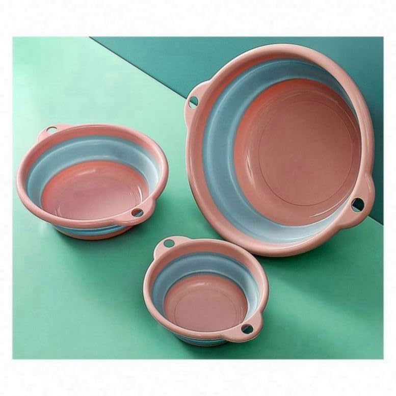 بولة غسيل قابلة للطي متعددة الاستخدامات مع فتحة تصريف من Next Store ، بولة للغسيل والرحلات، مناسبة للمطبخ والحمام والسفر (بينك)