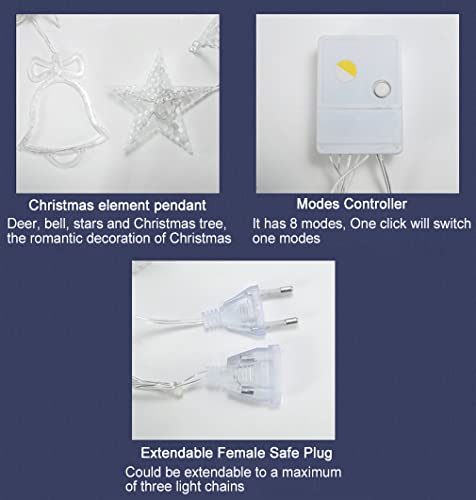 سلسلة مصابيح الكريسماس بطول 4 م مع أشجار الكريسماس والنجوم والأجراس وحيوان الأيل، مع قابس USB، 8 أوضاع وامضة، مقاومة للماء، للاستخدام الداخلي والخارجي، مثالية لتزيين الكريسماس