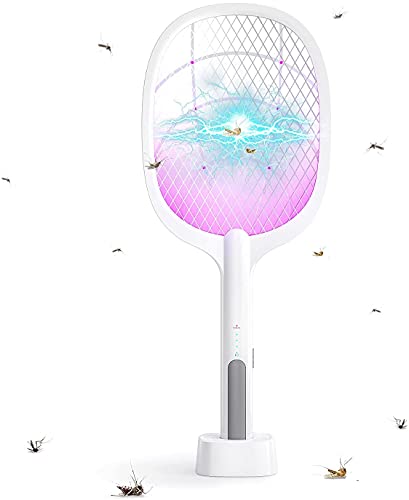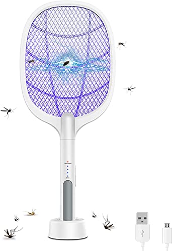 مضرب صاعق حشرات وبعوض كهربائي فوري لقتل الحشرات الطائرة، قابل لإعادة الشحن بإضاءة ليد، 3500 فولت، شبكة أمان 3 طبقات للتخييم في الأماكن المغلقة والمفتوحة