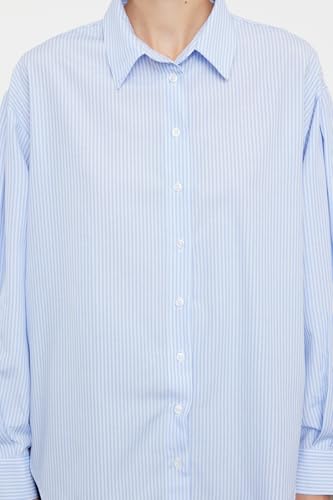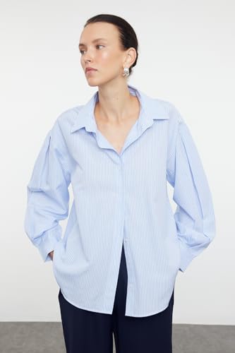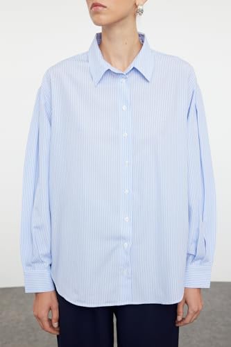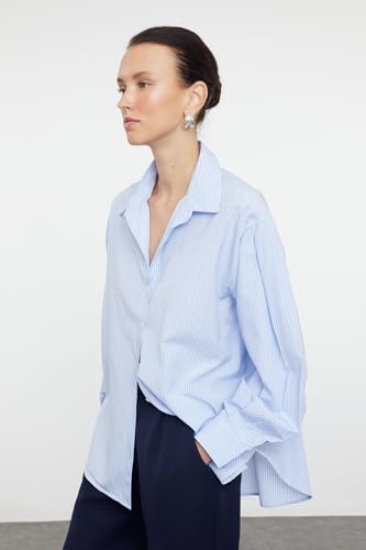 قميص من نسيج محبوك مخطط بلون أزرق بمقاس كبير للنساء من ترينديول، موديل TWOSS23GO00144