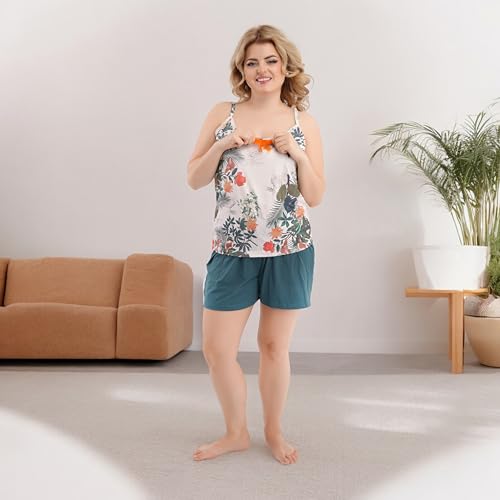 طقم بيجامة حريمي - بيجامة للنساء صيفي - طقم 2 قطعة من توب قط وشورت - منقوشين بروسومات مختلفة ومصممة خصيصا لتوفير الراحة والانتعاش في النوم