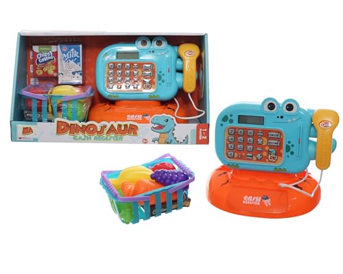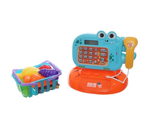 آلة تسجيل نقدية صغيرة كلاسيكية من ليتل بانكر مع أصوات حقيقية، فتحة عملات، وآلة حاسبة للعب تمثيلي بلا حدود كبائع متجر – متعددة الألوان