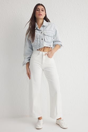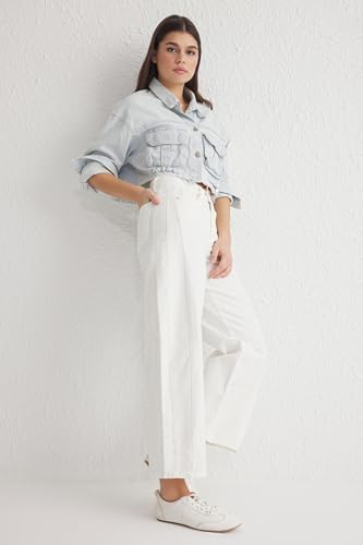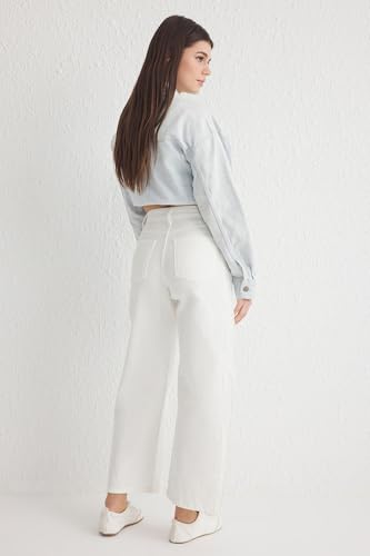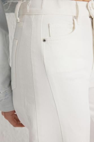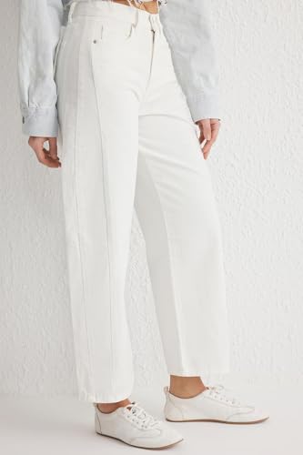 بنطلون جينز للنساء، بقصة واسعة وخصر عالٍ وتفاصيل خياطة، موديل TWOSS25JE00165 من ترينديول، أبيض